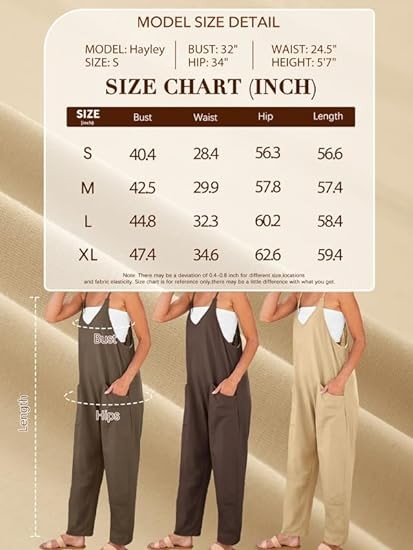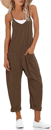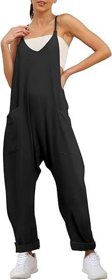 引人注目 – 深 V 领、阔腿长哈伦裤、舒适孕妇、休闲无袖连身衣、细肩带、柔软背带、两个侧大口袋。 打造讨人喜欢的宽松舒适效果。