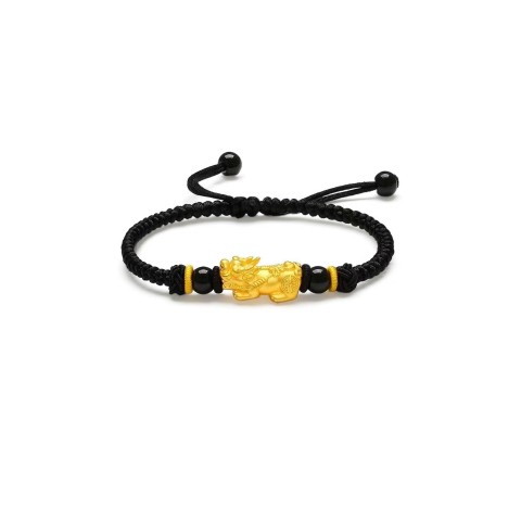 足金黄金貔貅手绳纳财招财进宝旺财运辟邪保平安之愿【纳财四方貔貅红绳+黑绳】 ZL035